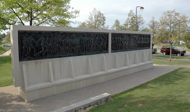 Olympic Games Friezes at Alumni Arena, Coventry Entrance, University at Buffalo North Campus. South view of the 2-sided installation.